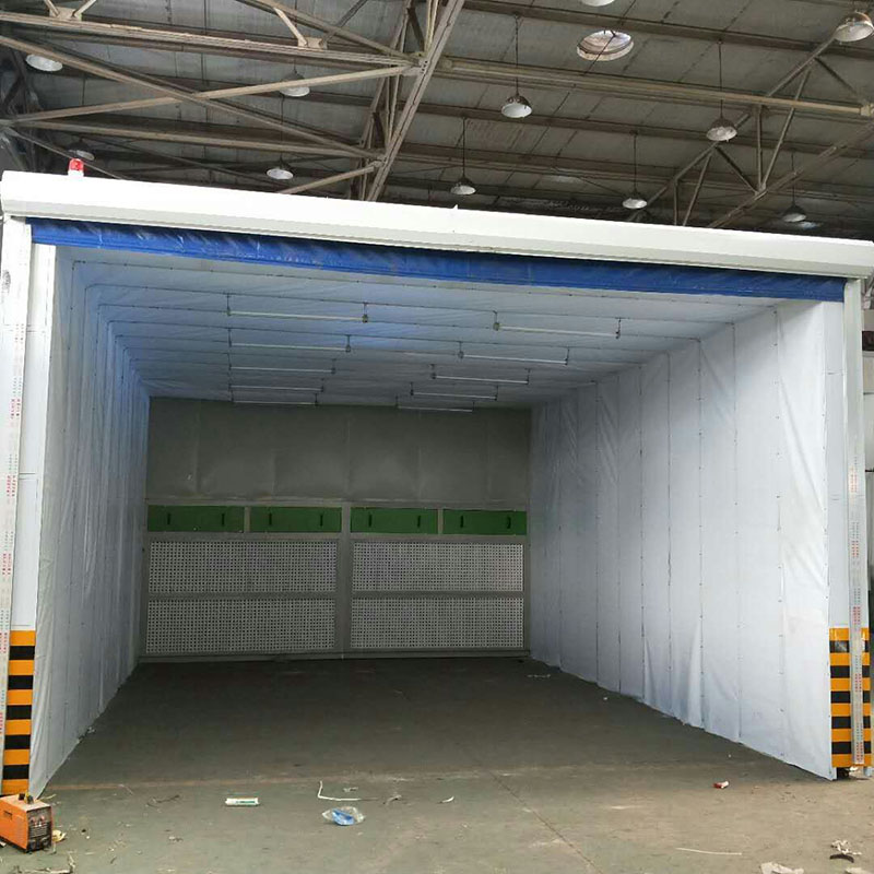 一、移動式伸縮噴漆房是目前在造船、航天、重工機(jī)構(gòu)、鋼構(gòu)、鍋爐等行業(yè)噴漆室常用的設(shè)備。使用時可自動擴(kuò)展形成封閉式或半封閉式的空間,不用時可收縮成一個占用很小空間的環(huán)保噴漆室設(shè)備。移動式伸縮式噴漆室因其使用靈活、節(jié)省空間和投資成本低,在現(xiàn)代涂裝應(yīng)用中越來越廣泛。