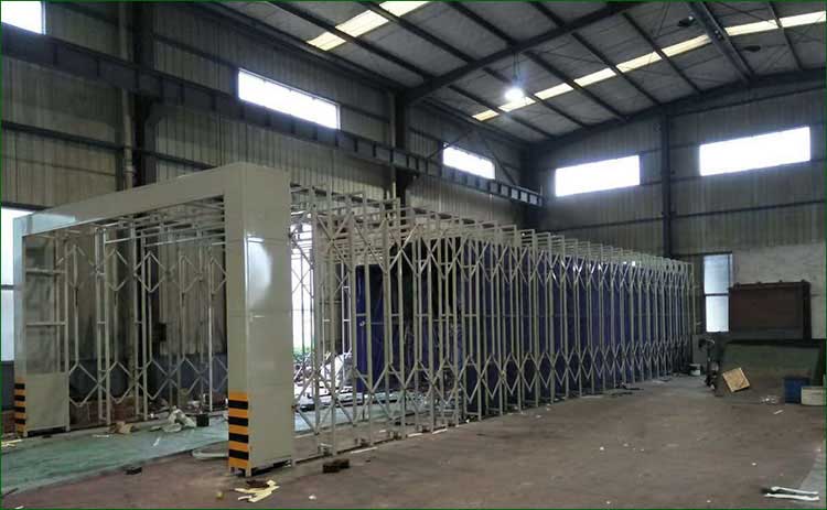 2.2、移動框架室體:由移動龍門架裝置、移動房體支架、伸縮控制連桿室體密封布等組成。