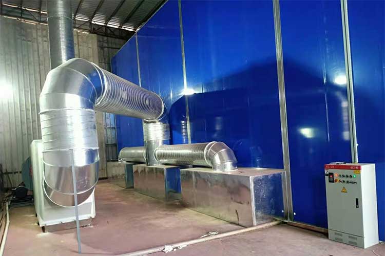2.2、噴漆室采用上送風(fēng)側(cè)排風(fēng)玻纖地棉漆霧處理方式的結(jié)構(gòu)形式。