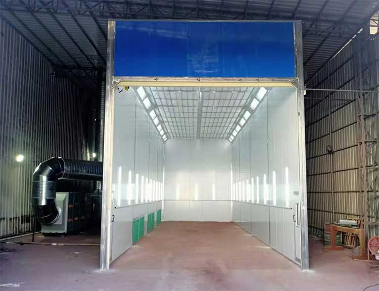 ?噴漆室:噴漆時具備通風(fēng)、照明、空氣凈化,并應(yīng)具備電源缺相報警、電壓過高或過低報警功能。噴漆室采用上部送風(fēng),側(cè)部排風(fēng)的無泵水簾式漆霧處理結(jié)構(gòu)。