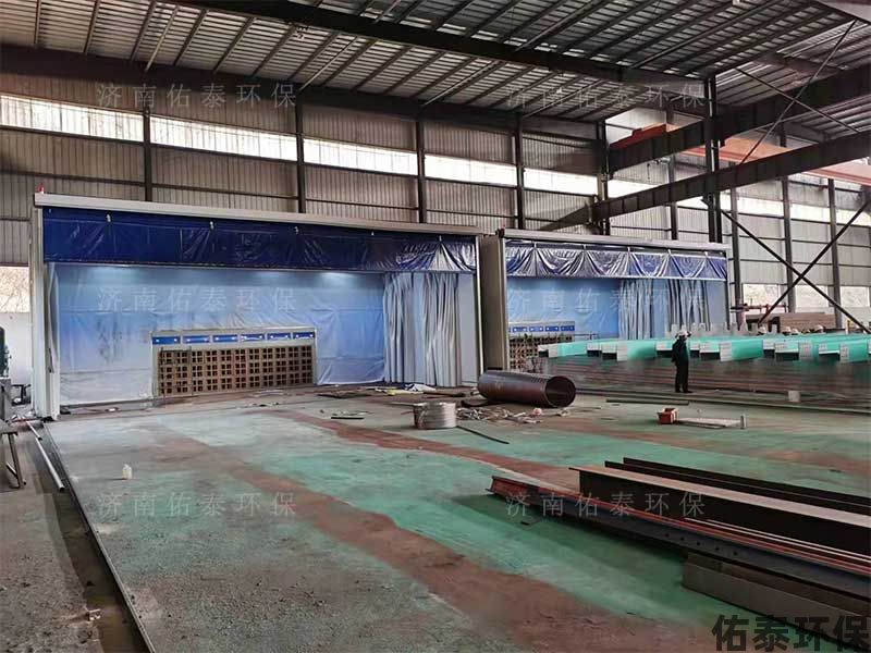 四川某企業(yè)在生產(chǎn)過程中,需要對鋼結(jié)構(gòu)工件表面進行噴漆作業(yè),由于工件較大,之前廢氣沒有得到有效控制,對大氣環(huán)境和室內(nèi)生產(chǎn)環(huán)境造成較大污染。按照國家有關(guān)法律法規(guī)和相關(guān)部門要求,對在生產(chǎn)過程中產(chǎn)生的有機廢氣(包括:甲苯、二甲苯、非甲烷總烴及粉塵)進行有效處理。因此,貴公司決定對噴涂過程中產(chǎn)生的有機廢氣進行治理確保達標排放,以達到國家有關(guān)標準,實現(xiàn)綠色環(huán)保。我司根據(jù)要求作出如下解決方案:移動伸縮房+干式噴漆臺+活性炭吸附箱。