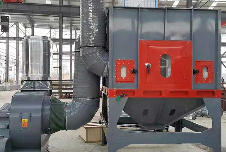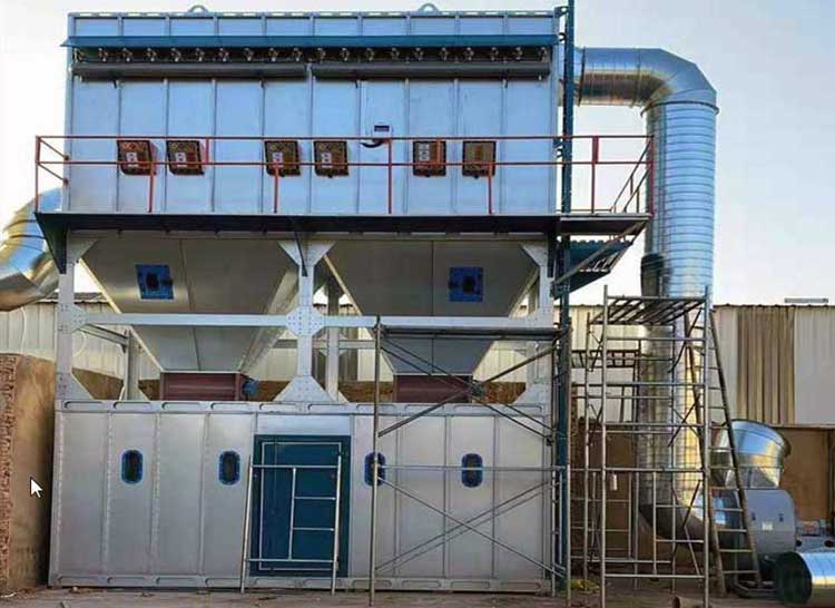 中央除塵設(shè)備是將含有木屑顆粒的氣流經(jīng)過風(fēng)機(jī)運(yùn)輸送至布袋過濾器的導(dǎo)流倉中,氣流在導(dǎo)流板的作用下流速降低,較重的木屑顆粒在重力的作用下落入惠倉里,其中較輕細(xì)的粉塵隨氣流向上吸附在濾袋的外表層面上,經(jīng)過布袋的過濾后,干凈的氣體進(jìn)入排風(fēng)室中并排到外面。隨著過濾工況的持續(xù),積累在濾袋外表面上的粉塵會(huì)越來越多,就會(huì)增加系統(tǒng)的運(yùn)動(dòng)阻力,降低系統(tǒng)的除塵效率。脈沖幅度和頻率設(shè)定完成后,在工作的過程中,系統(tǒng)會(huì)自動(dòng)完成過濾布袋的清灰,從而大大增加濾筒的過濾效率并延長過濾布袋的使用壽命。