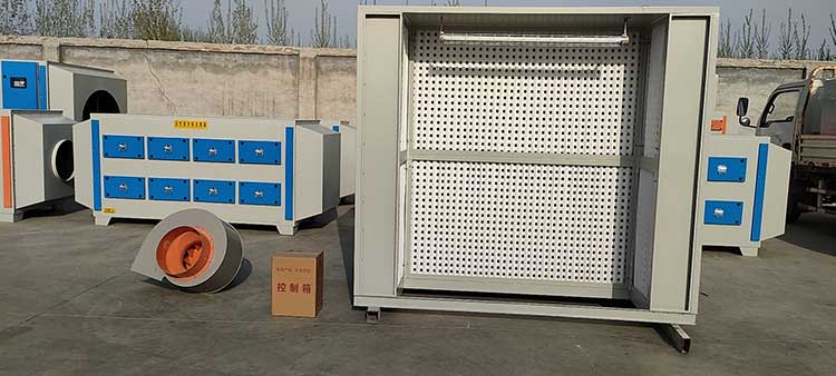 噴漆時(shí)所產(chǎn)生的漆霧顆粒,在風(fēng)機(jī)的吸力下,漆霧顆粒首先通過(guò)一級(jí)過(guò)濾(漆霧過(guò)濾棉、V型過(guò)濾紙、迷宮紙盒),大部分漆霧顆粒被截留在吸附介質(zhì)上面,剩下部分細(xì)小顆粒經(jīng)過(guò)纖維過(guò)濾棉進(jìn)行二次過(guò)濾,經(jīng)過(guò)二級(jí)過(guò)濾后,漆霧凈化效果達(dá)90%以上,處理后的廢氣通過(guò)廢氣處理設(shè)備(活性炭吸附箱、光氧催化、催化燃燒裝置)凈化后達(dá)到高空排放標(biāo)準(zhǔn)。