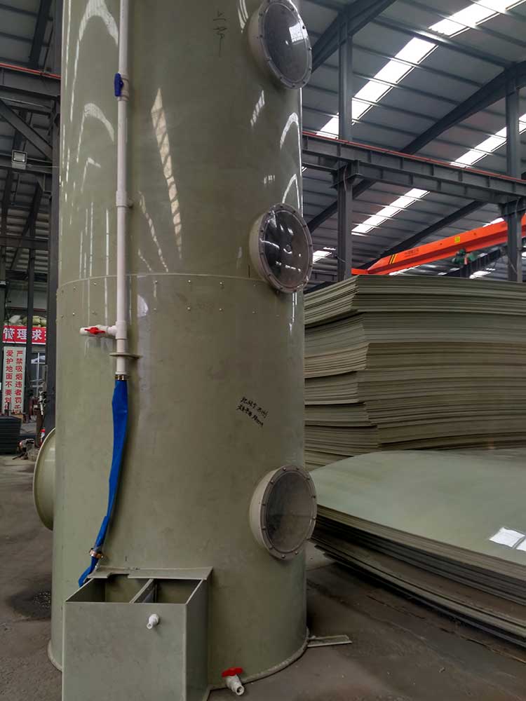 1.5萬(wàn)風(fēng)量酸霧凈化塔規(guī)格為:ф1.8m*H4.0m*10mm。進(jìn)、出風(fēng)口直徑均為600mm。循環(huán)水量每小時(shí)22立方。每小時(shí)處理廢氣量16800立方。凈化塔整體厚度為10mm PP板。