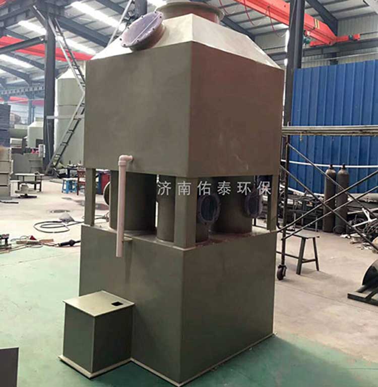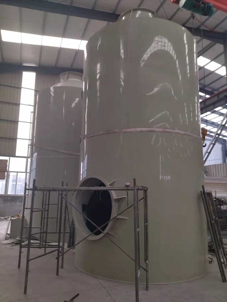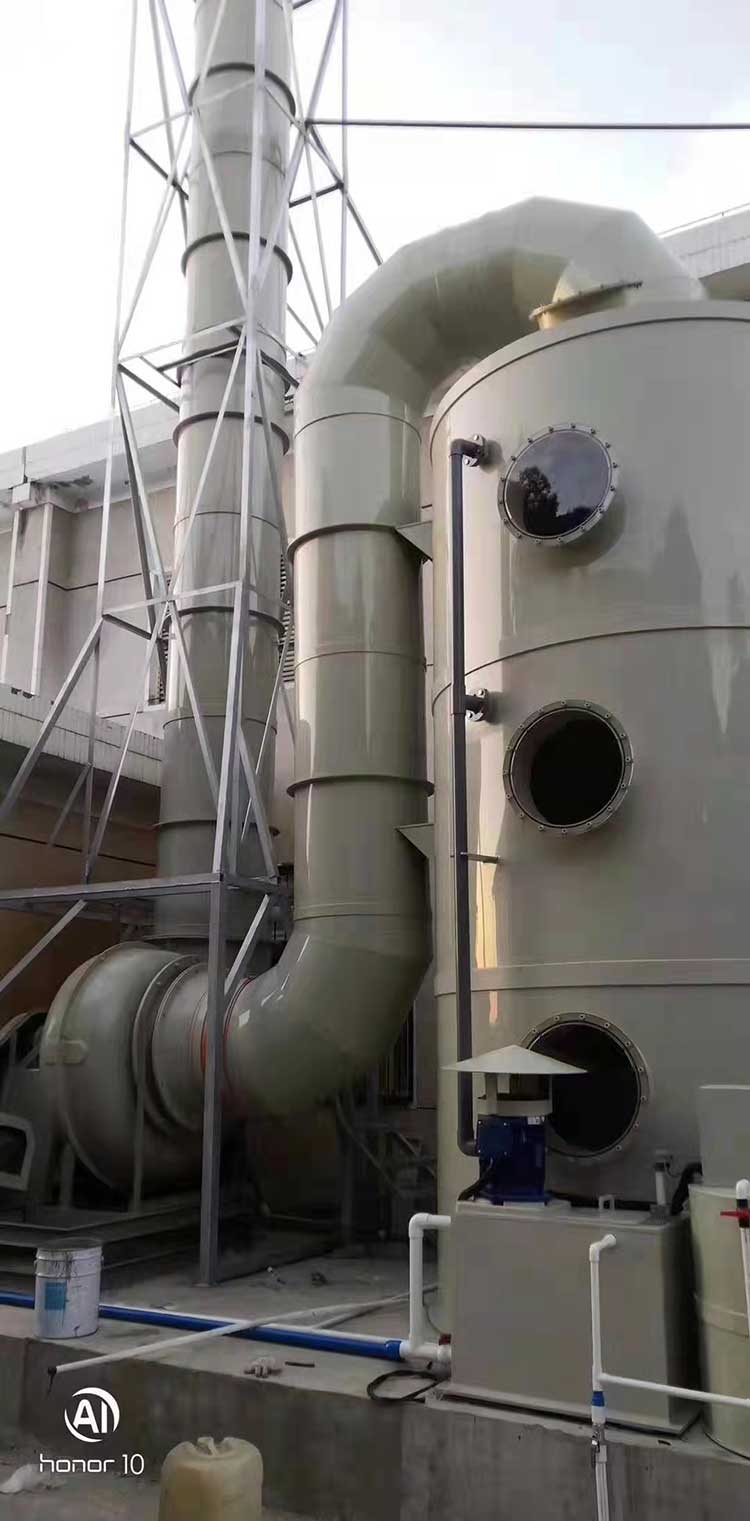 1.5萬風量pp噴淋塔塔規(guī)格為:ф1.8m*H4.0m*10mm。進、出風口直徑均為600mm。循環(huán)水量每小時22立方。每小時處理廢氣量15000立方左右。凈化塔整體厚度為8mm PP板。塔體內部有二層水噴淋裝置,三層浮球填充,帶水箱和2.2KW純銅芯普通循環(huán)水泵。