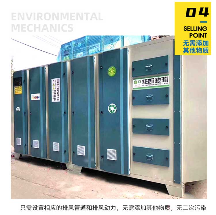 3、因排污廢氣與UV紫外線光束分解不會(huì)完全中和,分解不完全的臭氧通過(guò)活性炭進(jìn)行二次吸附。