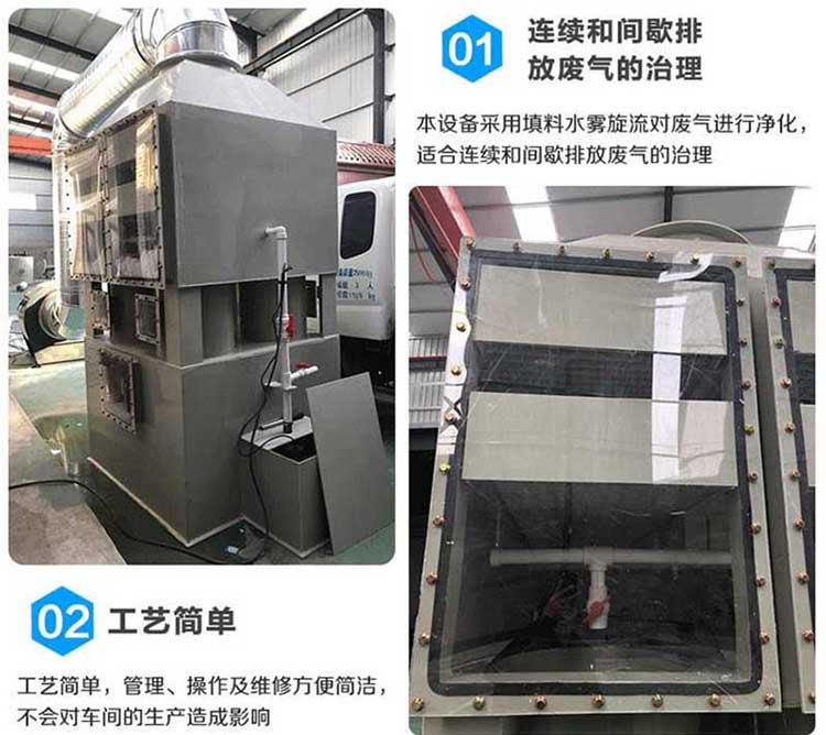 方形旋流凈化塔是普通噴淋塔的升級(jí)版,設(shè)計(jì)更加人性化,填料與清理更加方便,可重復(fù)使用,適合于連續(xù)和間歇排放廢氣的治理。工藝簡(jiǎn)單,管理、操作及維修更加方便簡(jiǎn)潔,不會(huì)對(duì)車間的生產(chǎn)造成任何影響,同時(shí)酸霧吸收器適用范圍更廣,除霧效果更好。