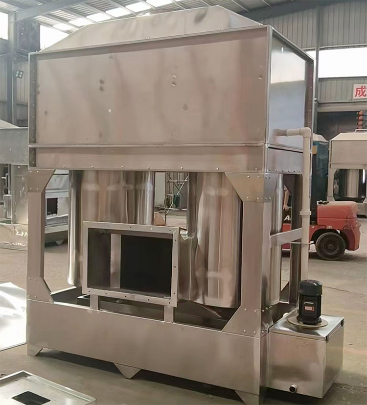 氣旋噴淋塔在離心力作用下,含塵氣體呈橫向向心運動,含塵氣體停留時間更長,洗滌效果更好,徹底改善了噴淋塔在某些特定工況下存在的除塵不徹底、水噴淋塔容易堵塞等技術(shù)缺陷。產(chǎn)品采用專力技術(shù),避免水泵及噴頭的堵塞,大大提高生產(chǎn)效率,其中水池的水可循環(huán)使用,避免產(chǎn)生二次污染造成的困擾,更節(jié)約了水資源。