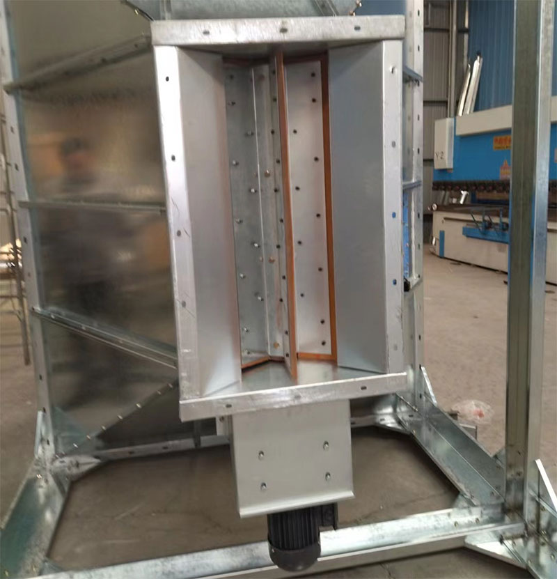 灰斗傾角不宜小于55~60°,且內(nèi)壁要光滑,四個轉(zhuǎn)角處***好焊接R=200的圓弧形鋼板,消滅“死角”?;叶繁诎惭b振打器,每個灰斗配備兩個1.1KW電振機,同時每只灰斗裝一個可用大錘敲打的在水平方向伸出灰斗加固筋外緣300mm的垂直打擊面,其安裝位置在灰斗捅灰也相鄰的側(cè)壁上。